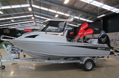 Just come in to the shop is this new McLay 591 XL hardtop, just in time for the upcoming summer. It has Mercury 150Hp 4 stroke motor on it, and sits on a Toko trailer, with trailer mate, tie downs and jockey wheel.